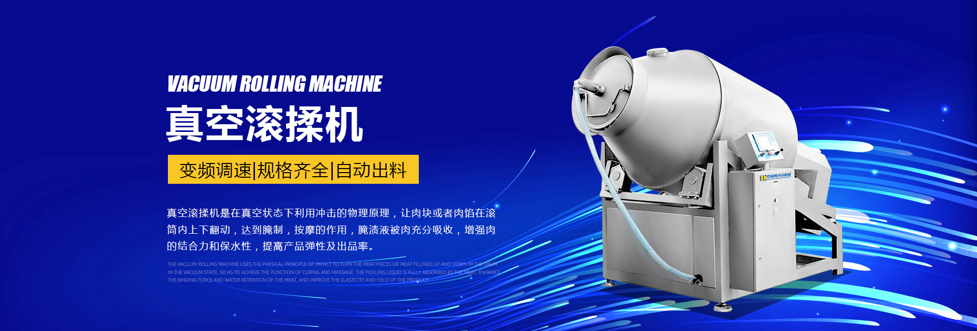 公司主要生產不銹鋼制品食品機械:各種規(guī)格型號真空滾揉機、制冷滾揉機、提升機、電加熱夾層鍋、肉丸機、真空攪拌機、絞肉機、灌腸機、打卡機、線扎機、斬拌機、鹽水注射機、煙熏爐、油炸機、巴氏殺菌線、連續油炸線、肉丸成型水煮線、醬鹵生產線、肉丸破碎機、真空包裝機、洗袋風干機、豬頭劈半機、不銹鋼火腿模具、肉斗車、案桌、煙熏車、屠宰類機械設備、清洗風干設備、肉類解凍設備、滾筒拌料機等。產品廣泛適用于火腿腸、肉丸、肉串、鹵制品、海產品、禽類深加工、油炸、泡椒風味、速凍水餃、魚豆腐、千葉豆腐、豆腐干、牛肉干、牛排雞排類、禽蛋、麻辣、休閑、水果蔬菜清洗、中央廚房、餐飲連鎖、寵物食品等食品生產。